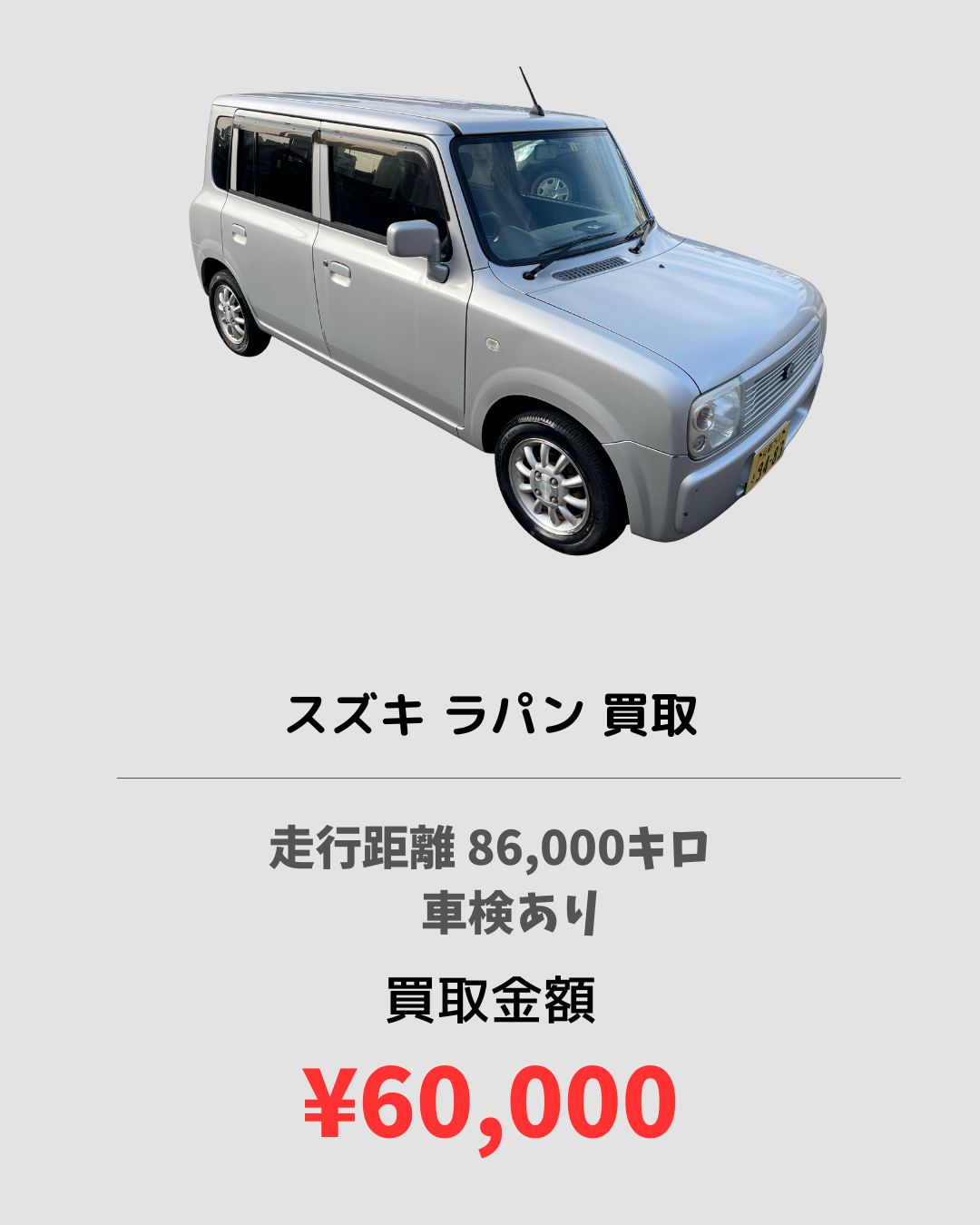 初代モデルで年式の古い車、走行距離が多いお車でしたが、廃車寸前のお車でもしっかり高価買取いたします。