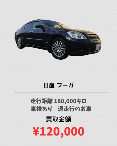 フーガをはじめ、国産セダンの廃車・不要車の買取はお任せください。
