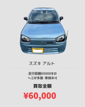 傷へこみが多い車、車検切れ、故障車、なんでも買い取ります。