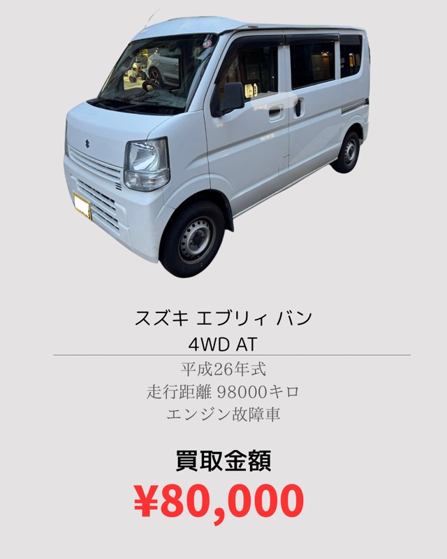 走行距離が多い車やキズヘコミの多い車も大歓迎です。