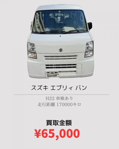 ●買取実績 ・一覧はこちら ●スズキ エブリィ バン 買取 スズキの軽バン、エブリィ買取でした。 走行距離多めで、傷ヘコミの多いお車でしたが、即日買取させて頂きました。 解体をご検討のお客様も是非ご相談ください。 1台1台しっかりお査定させて頂きます。 ≪ ホンダ エリシオン 買取 | スズキ MRワゴン 買取 ≫ /blog/blog_comments/captcha /blog/blog_comments/get_token