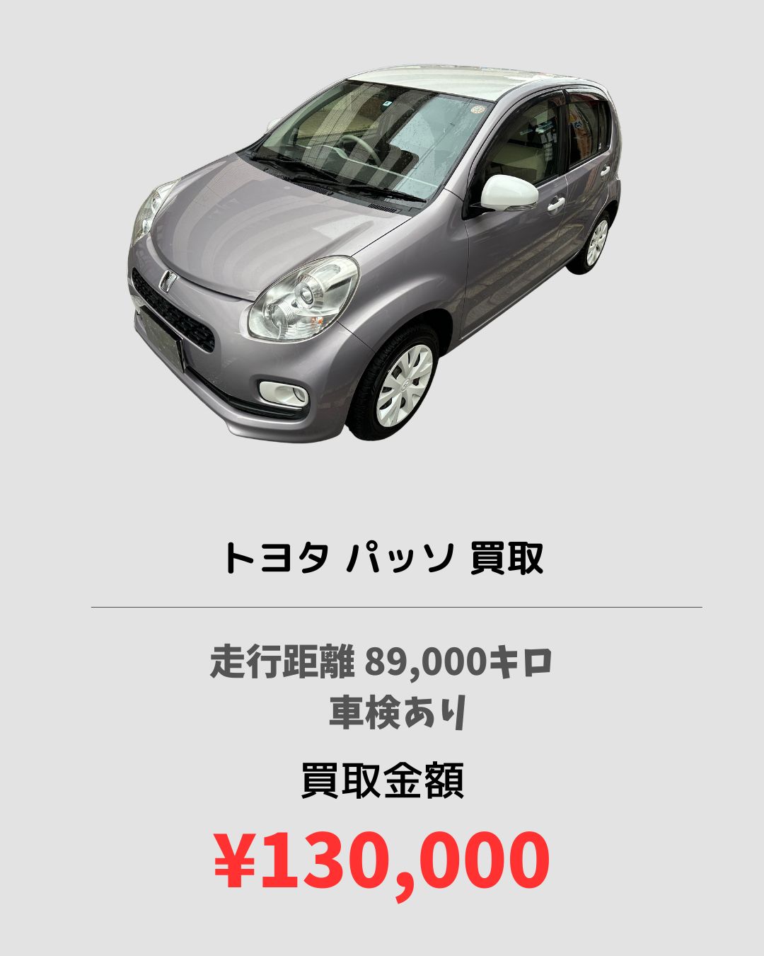 京都市にてトヨタ・パッソの買取をさせていただきました。