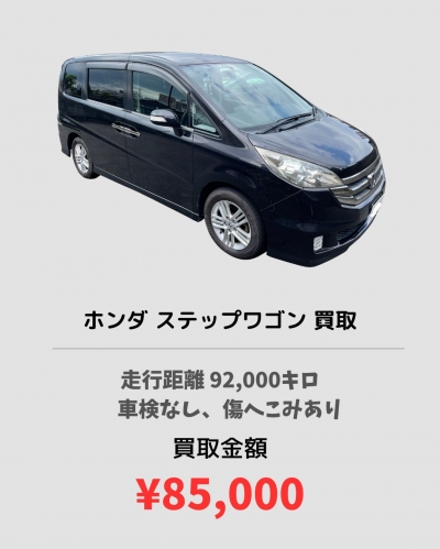 人気の5ナンバーサイズミニバン「ホンダ・ステップワゴン」を買取させていただきました。